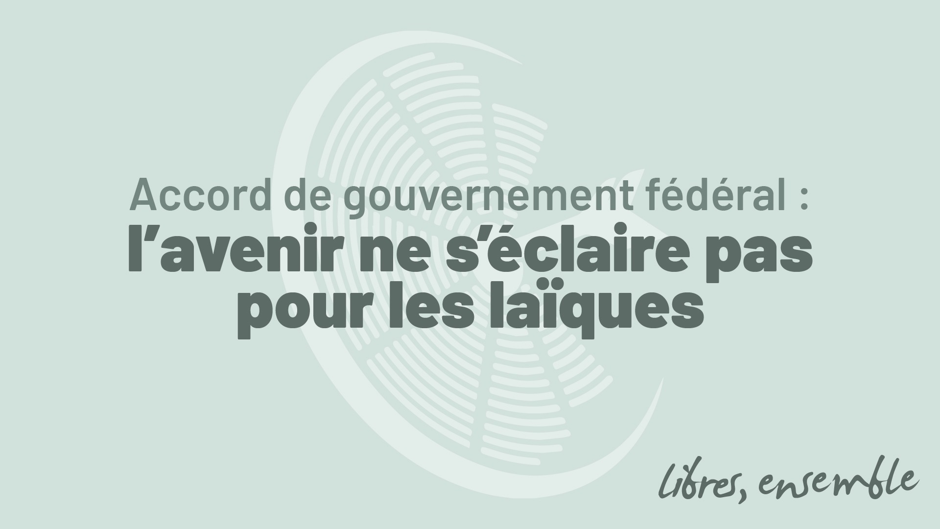En synthèse, l’accord de gouvernement fédéral ne va que très partiellement dans le sens de l’aspiration laïque à une société plus libre, plus juste et plus fraternelle.